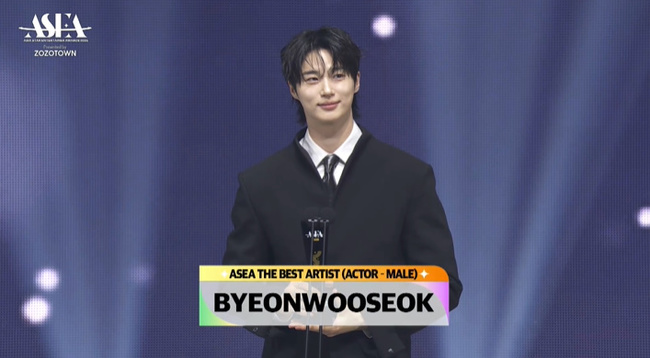 변우석은 THE BEST ARTIST ACTOR(더 베스트 아티스트 액터) 부문 수상으로 이날 시상식에서 3관왕을 차지했다. 변우석은 “이 자리를 마련해주신 ASEA 관계자 분들 감사하다. ‘더 베스트 아티스트’ 상에 걸맞은 배우가 될 수 있게 항상 고민하고 노력하겠다. 항상 응원해주시는 팬 분들 진심으로 감사하고 좋은 연기, 좋은 작품으로 다시 인사드리겠다”라고 소감을 밝혔다.