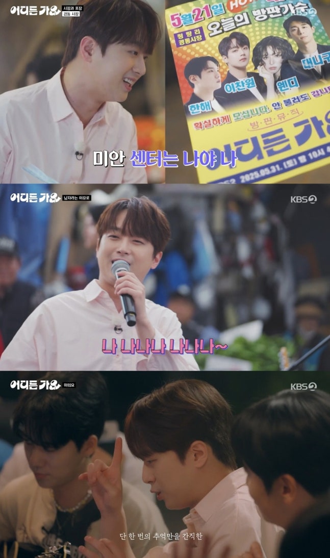 지난 5월 31일 밤 10시 40분 KBS 2TV '방판뮤직 : 어디든 가요'(이하 '방판뮤직')가 첫 방송된 가운데, 이날 이찬원은 멤버들과 함께 '하루의 시작과 끝'이라는 주제로 전통시장과 포장마차에 방문했다.