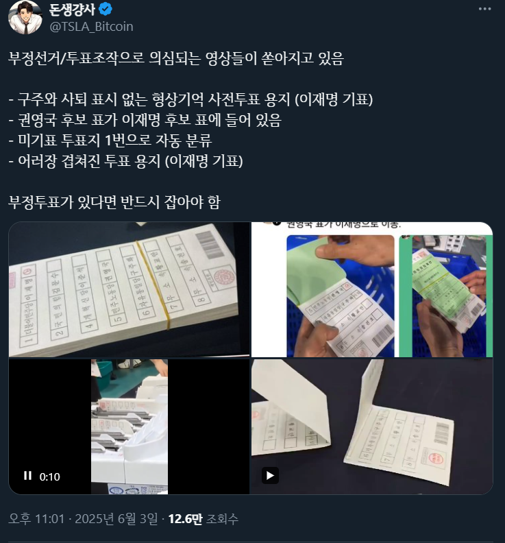 4. 여러장 겹쳐진 이재명 투표지!! (다른 후보들 투표지도 저런거 있음;)