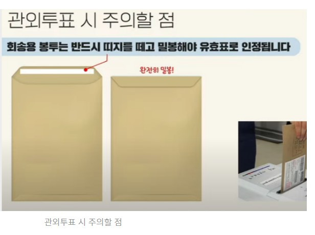 ➡️구주와 사퇴 표시가 없는 용지는 '재외국민' 투표 용지입니다. 그 경우 봉투에 넣기때문에 접을 필요 없습니다 (투표용지 원고 송부 18일=구주와 사퇴 18일, 재외국민 투표 20일)