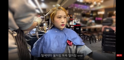 원래도 흑발했던 머리라 안그래도 얼룩잡기 어려운데 약이 너무 안먹고 탈색약이 물처럼 흐르는거보고 캐치해내심