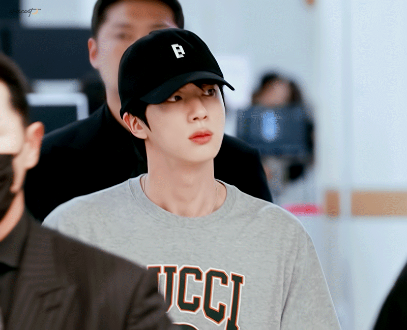 지금 뜬 더 잘생겨진 것 같은 방탄 진 입국 영상.gif