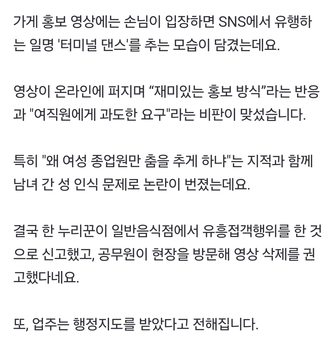 젠더 갈등으로 번진 곱창집 여직원 '댄스 서비스'