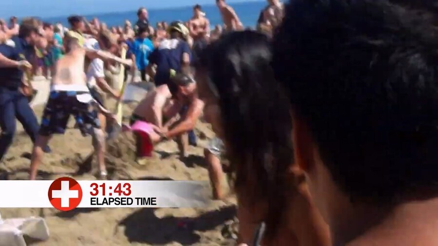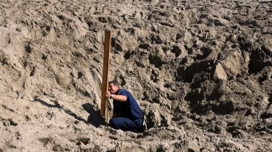 기겁한 딜런은 주변 어른들한테 사람이 파묻혔다고 소리침, 사람들은 곧장 땅을 파기 시작했고, 딜런은 인근 해상구조대에게도 달려가서 도움을 요청함