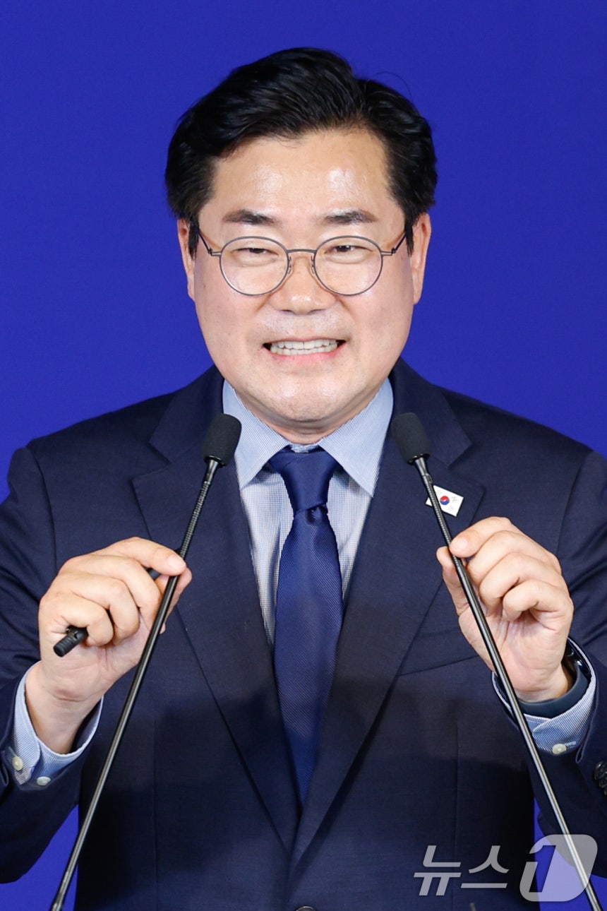 (서울=뉴스1) 안은나 기자 = 박찬대 더불어민주당 의원이 23일 오전 서울 여의도 당사에서 당대표 출마 선언 기자회견을 하던 중 "지금까지는 이재명이 박찬대의 곁을 지켜줬다면, 이제부터는 박찬대가 이재명의 곁을 지켜야 한다고 다짐했다"고 발언하며 눈시울을 붉히고 있다. 2025.6.23/뉴스1