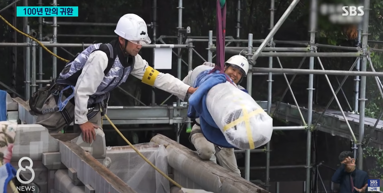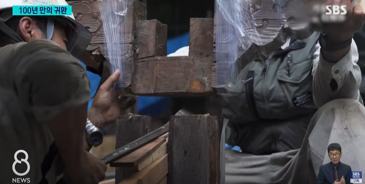 작년 봄부터 기와랑 목재 하나하나 해체해서 우리나라에 가져와서 복원작업중이었는데