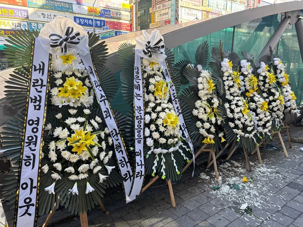 | ▲ 국민의힘 김은혜 의원 분당 사무소 인근에 놓인 근조화 |