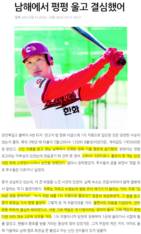 한화 하주석 김연정 사내연애 들킨썰