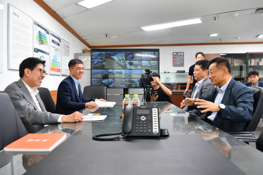 박형준 부산시장은 지난 7일 중구 중앙동 물류기업 인터지스 본사를 찾아 기업 운영의 애로사항을 청취하고 있다. [부산시 제공]