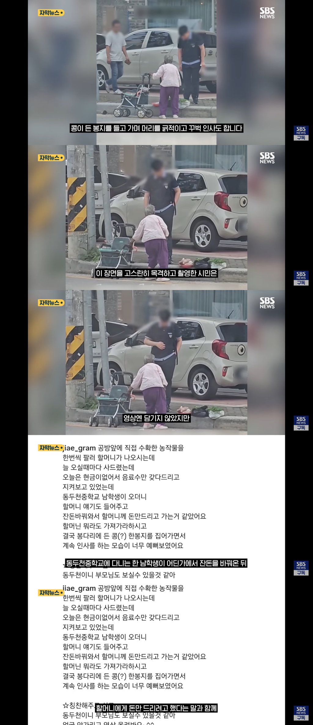 이슈 폭염 속 노점 할머니에 ‘꾸벅’, 꼬깃꼬깃 비상금 꺼낸 중학생