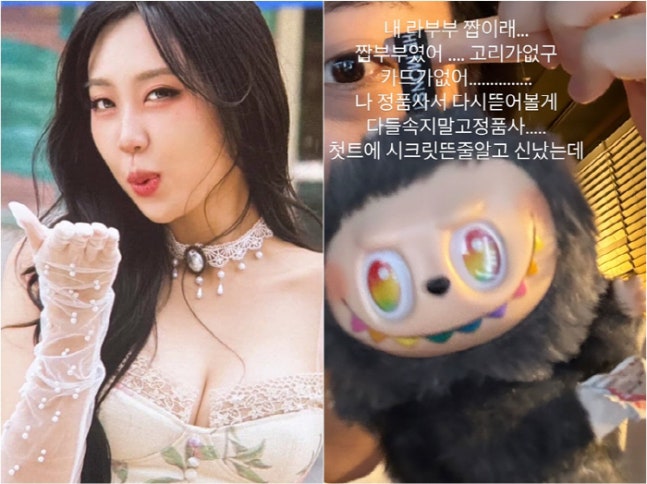 이영지는 10일 자신의 개인 계정에 "내 '라부부' 짭이래. '짭부부'였어. 고리가 없고 카드가 없어. 나 정품 사서 다시 뜯어볼게. 다들 속지 말고 정품 사. 첫트에 시크릿 뜬 줄 알고 신났는데"라고 호소했다.