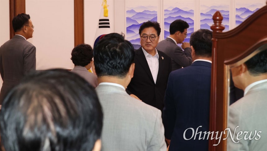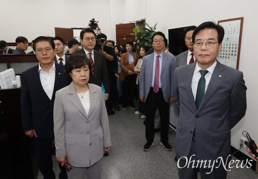이어 국민의힘 지도부는 국회 법제사법위원회 소속 같은 당 의원들과 함께 국회의장실을 찾아 항의했다.
