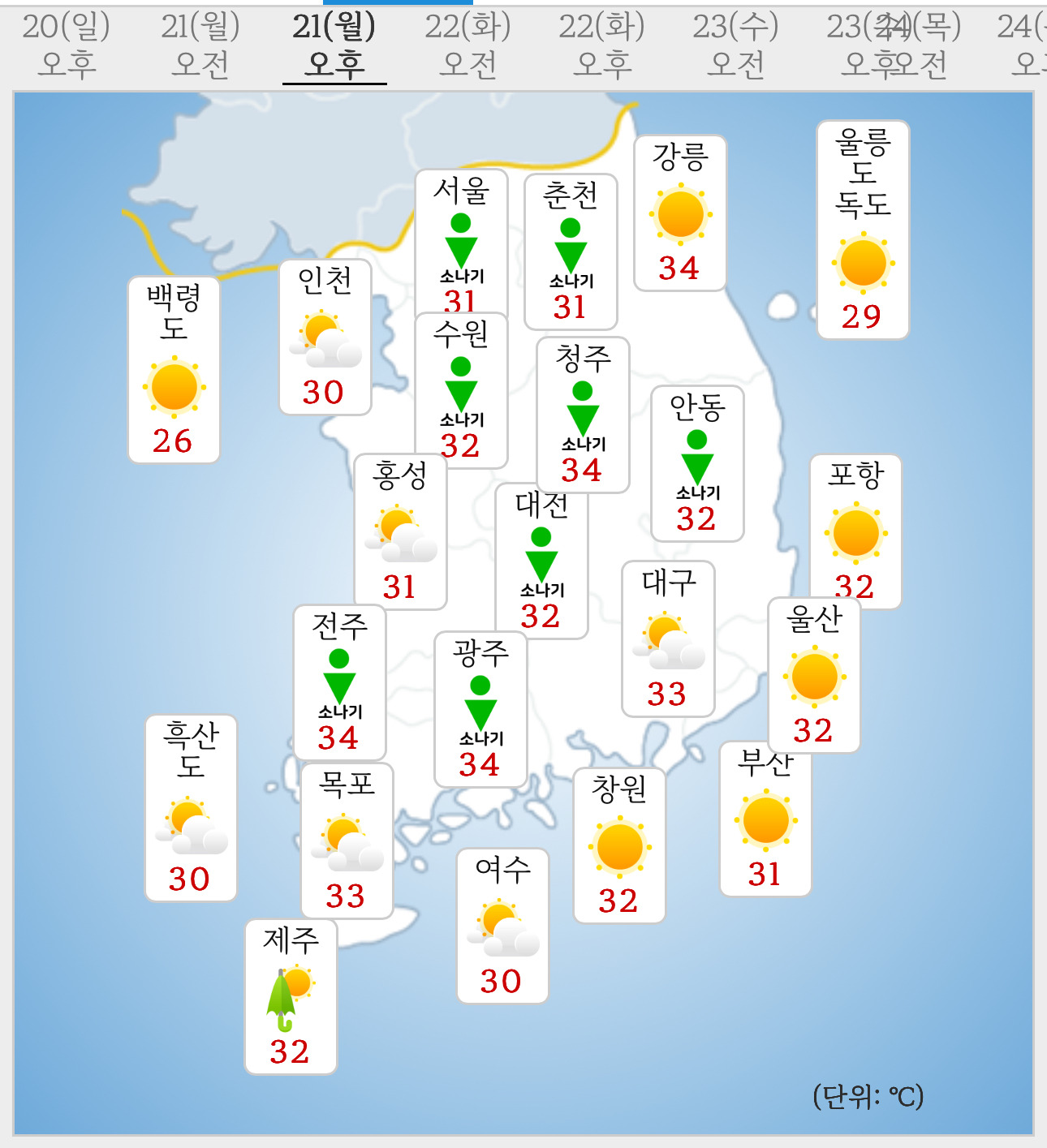 * 예상 강수량(21일)