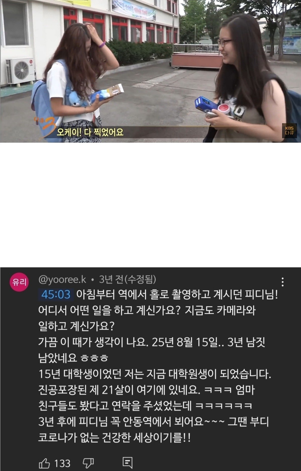 유튜브에 달린 학생 댓글