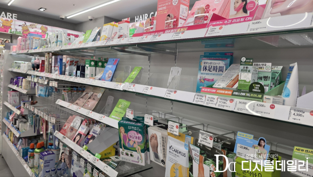 특히 건강기능식품과 생리대, 화장 소품류의 품절 현상이 두드러졌다. 비타민, 유산균 같은 기초 건강 보조제는 입구 근처 매대부터 빈자리가 보였고, 일부 제품은 아예 진열대에서 빠진 상태였다. 생리대 역시 대부분의 브랜드가 품절이었으며, 매장 직원은 "오후 중반쯤 대부분 빠진다. 요즘은 오전에 와야 원하는 걸 살 수 있다"고 귀띔했다.