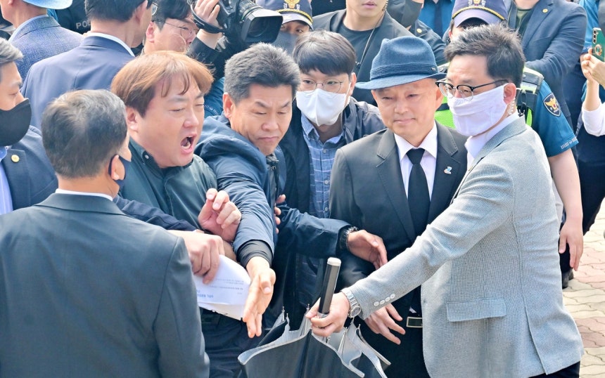 | ▲ 안창호 국가인권위원회 위원장이 지난 5월 18일 광주광역시 북구 국립 5·18민주묘지에서 열린 5·18민주화운동 45주년 기념식에 참석하기 위해 기념식장에 도착한 뒤 시민들의 항의에 발길을 돌리고 있다. |