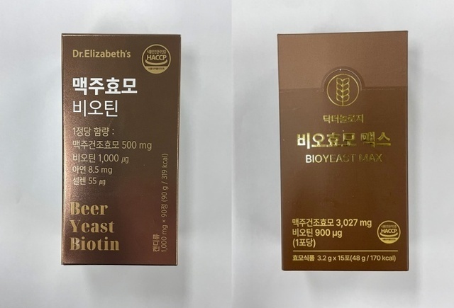 '맥주효모 비오틴'은 유통전문판매업체 (주)드림리더가 판매한 제품으로 해당 제품 역시 아셀렌산나트륨 기준 규격 부적합으로 확인됐습니다. 현재 안산시청이 판매 중단 및 회수 조치 중이며, 소비기한은 2026년 11월 24일인 제품이 대상입니다.