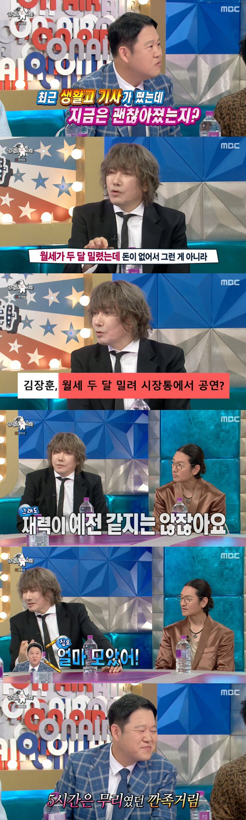 이어 김구라가 "재력이 예전만 못하시지 않느냐"고 질문하자 김장훈은 "예전에도 그렇고 지금도 제로다"라고 답했다.