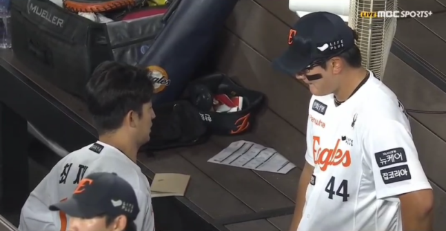 이날 중계화면에는 최재훈이 더그아웃에서 김서현에게 조언을 하는 장면이 잡히기도 했다. 다소 심각해 보이는 분위기에 최재훈이 김서현에게 화를 낸 것이라는 오해도 있었다.