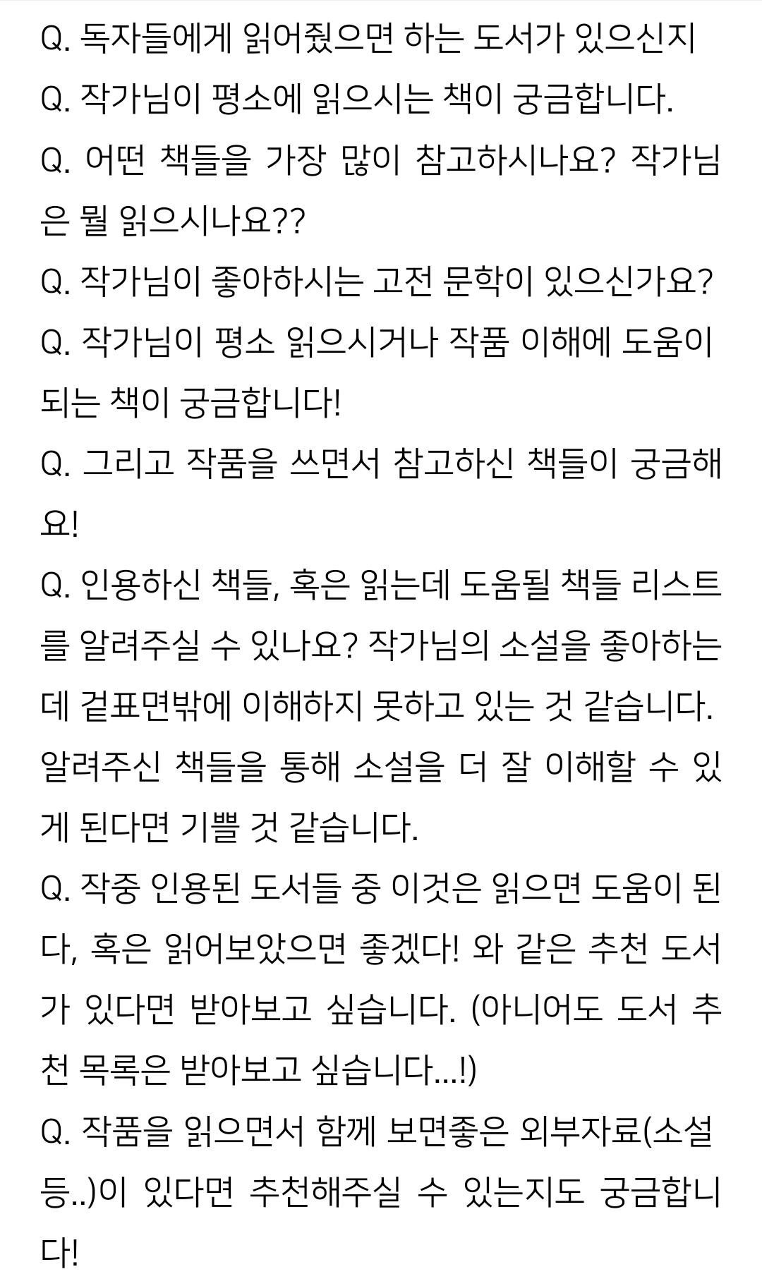 작가가 준 QnA - 철학 교수의 논문같은 작가의 답변과 논문을 보며 머리 긁적이며 어어,,? 하는 1학년 학부생들 같은 독자