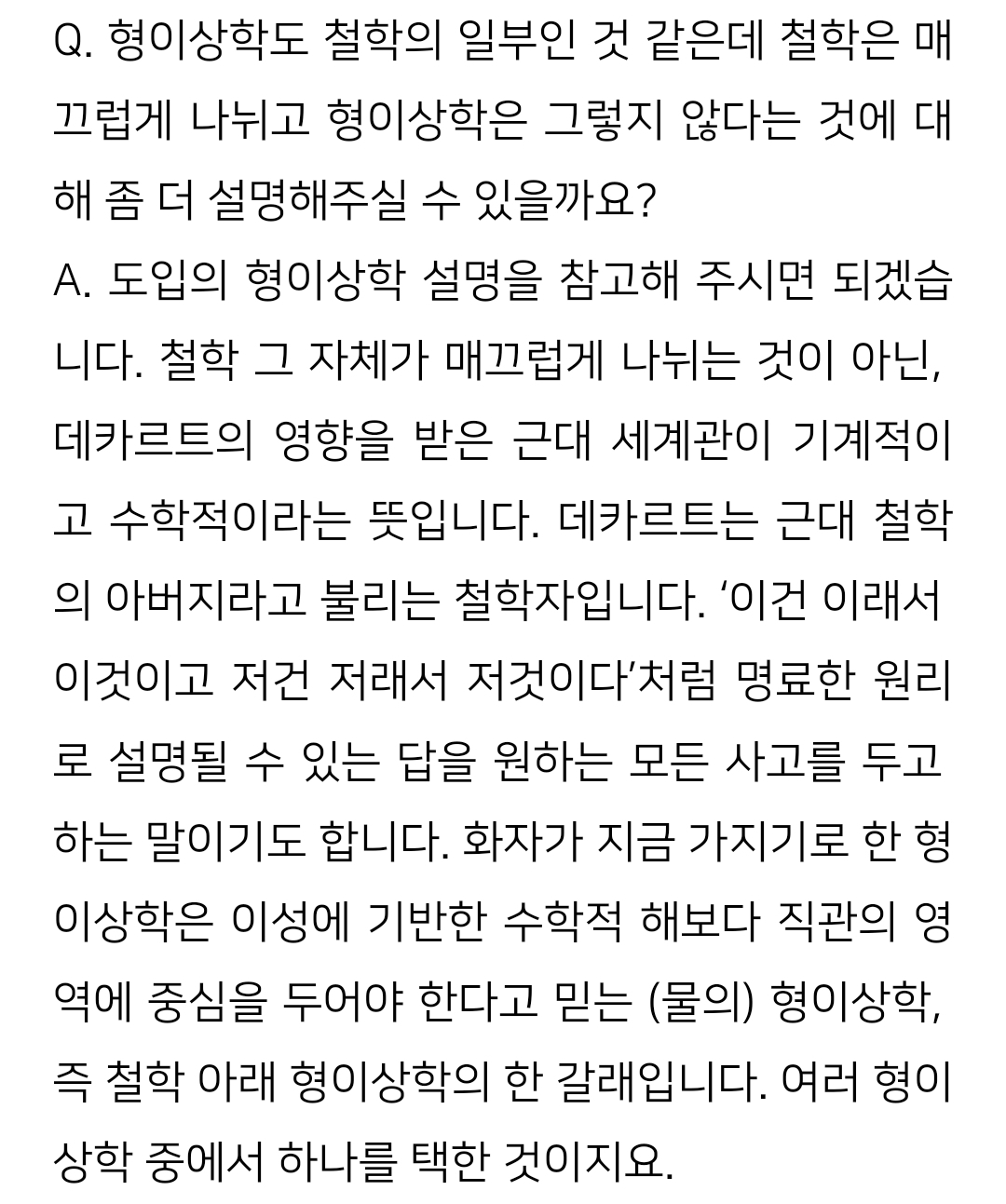 데카르트요? 예? 형이상학이요? 아리스토텔레스 말씀하시는건가요?