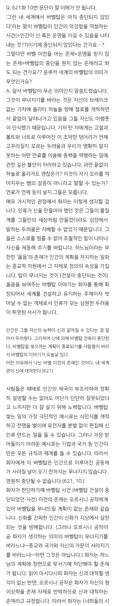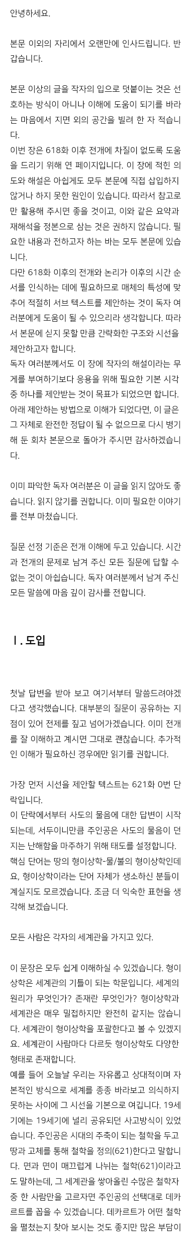 생각보다 본격적으로 철학적인 답변을 받으니 순간 당황스러웠지만 아주 좋아요. 일단 뭔가 공부하는 기분이라 좋아요 근데 작가님이 교수님으로 보이는 이유는 뭘까요