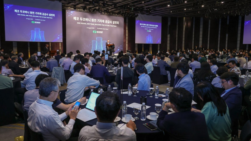 한수원은 오늘(21일) 서울 중구 웨스틴조선호텔에서 '체코 두코바니 원전 사업 기자재 공급사 설명회'를 열고 사업 추진 현황 및 기자재 구매 계약 일정 등을 소개했다고 밝혔습니다.