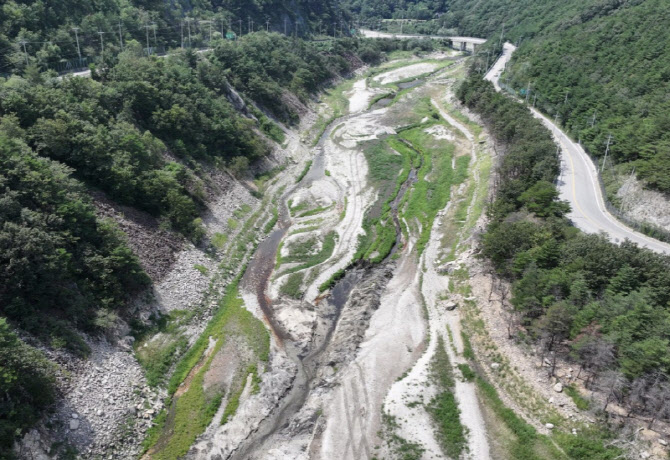 24일 강원 강릉시 주요 상수원인 오봉저수지와 일대 하천의 바닥이 드러난 모습. (사진=뉴스1)