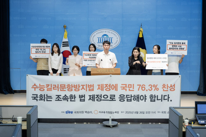 현재 국회에는 킬러문항 방지법으로 불리는 ‘공교육 정상화 촉진 및 선행교육 규제에 관한 특별법’(선행교육 규제법) 일부 개정안이 발의돼 있다. 지난해 9월 백승아 의원이 대표 발의했지만 11개월 동안 계류 중이다. 사걱세는 “조속히 수능킬러문항 방지법을 통과시켜 수능은 학교 교육으로 대비할 수 없다는 공교육 불신을 종식하고 과도한 사교육비 부담을 낮춰 민생경제의 안정을 도모해달라”고 촉구했다.