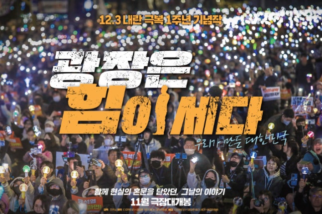 12·3 내란 극복 1주년을 기억하며 광장에서 함께 했던 모두를 응원할 다큐멘터리 영화 '광장은 힘이 세다'가 11월 개봉을 확정했다.