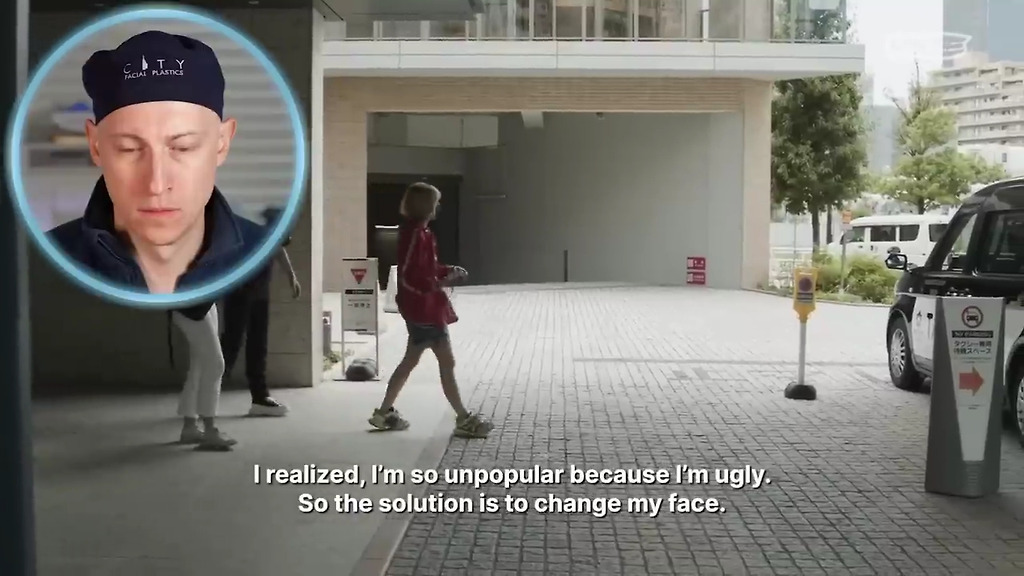 "우리는 술집 직원으로 일하고 있고 성형수술 인플루언서로도 활동하고 있는 여성을 만나볼 것입니다. 성형수술에 2,500만 엔이 넘는 돈을 썼지만 아직도 멈추기에는 멀었다고 합니다"