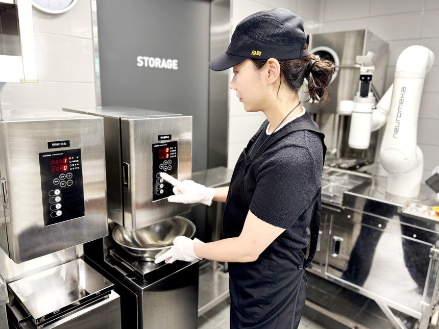 반죽 로봇은 배터믹스와 얼음물 등 각 제품에 필요한 등 반죽 재료와 정해진 양을 정확하게 계량해 자동으로 제공한다. 반죽 품질이 항상 일정하게 유지되며, 조리 시간과 작업 효율성 개선이 기대된다.