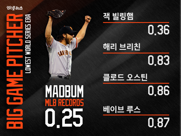 2014년 월드 시리즈 : 3경기 2선발 21이닝 2승 1세이브 1완봉 ERA 0.43