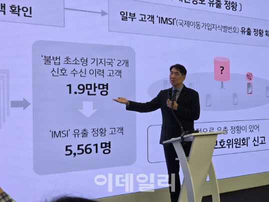 KT는 11일 서울 종로구 광화문빌딩 웨스트 사옥에서 기자간담회를 열고 소액결제 사태에 따른 대응 현황과 향후 계획을 발표했다. KT에 따르면 고객 통신 이력 분석 결과 불법 기지국 2개가 발견됐으며, 해당 기지국의 신호 수신 이력이 확인된 고객은 약 1만9000명에 달했다. 이 가운데 IMSI 유출 정황이 확인된 고객은 5561명이라고 밝혔다.