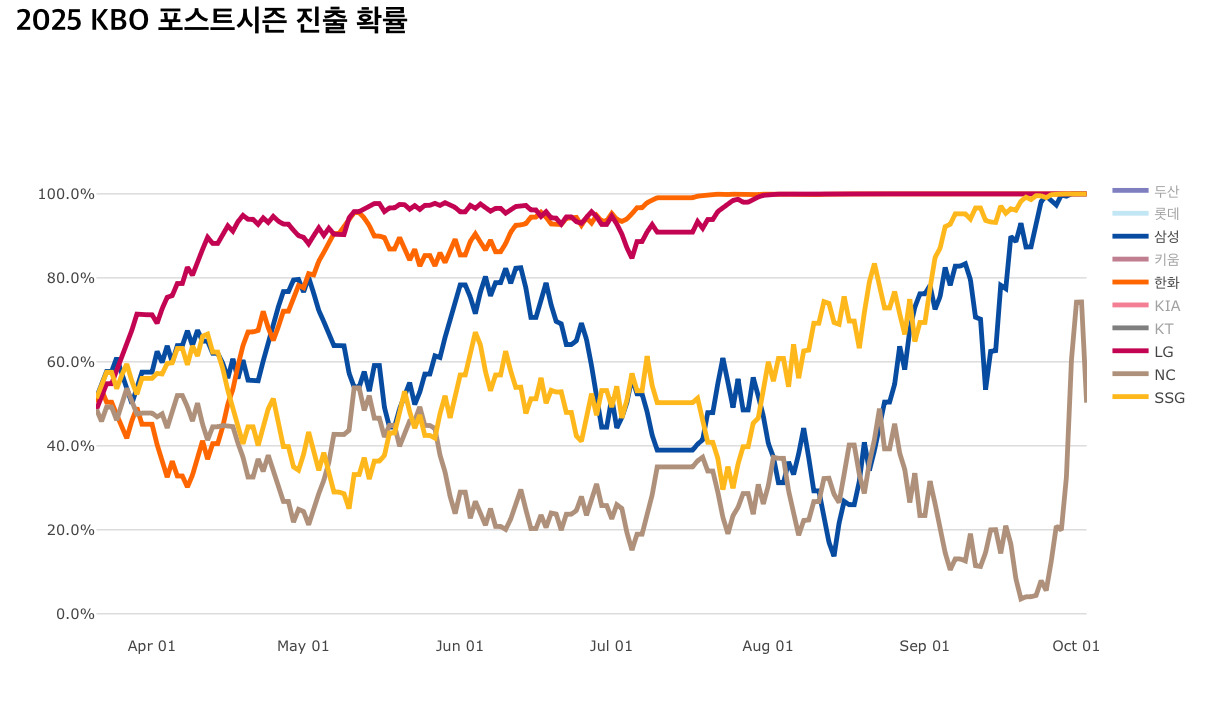 가을야구 진출은 일찍이 확정했던 1,2위
