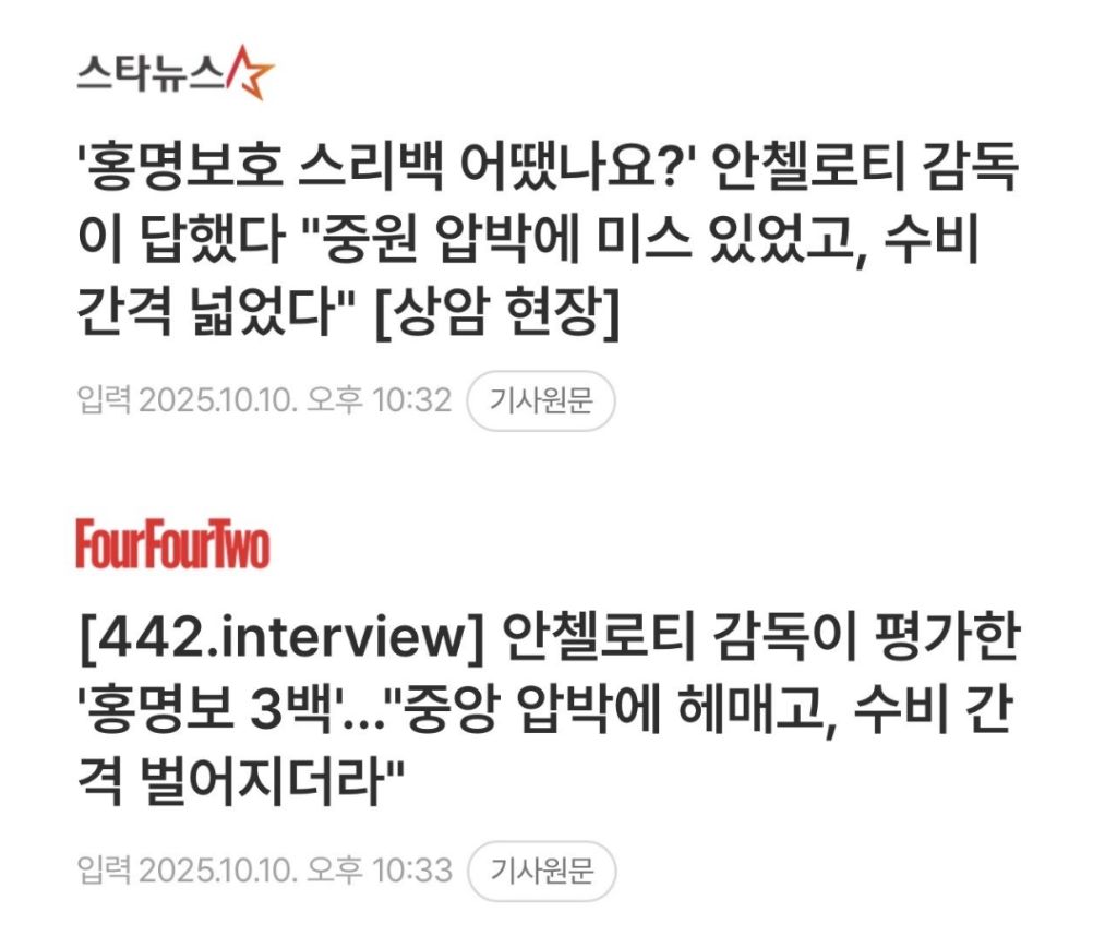 안첼로티 "한국 3백 왜 함?"