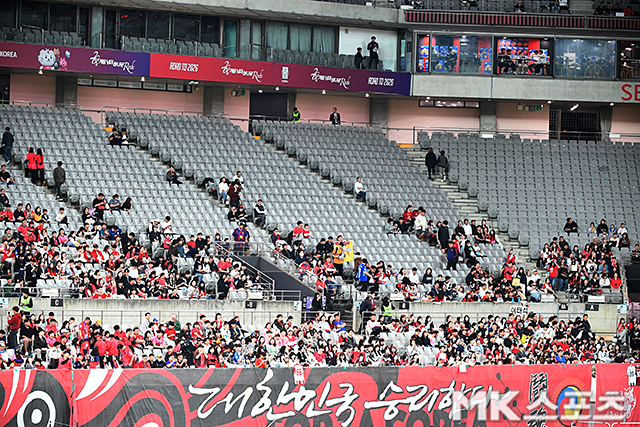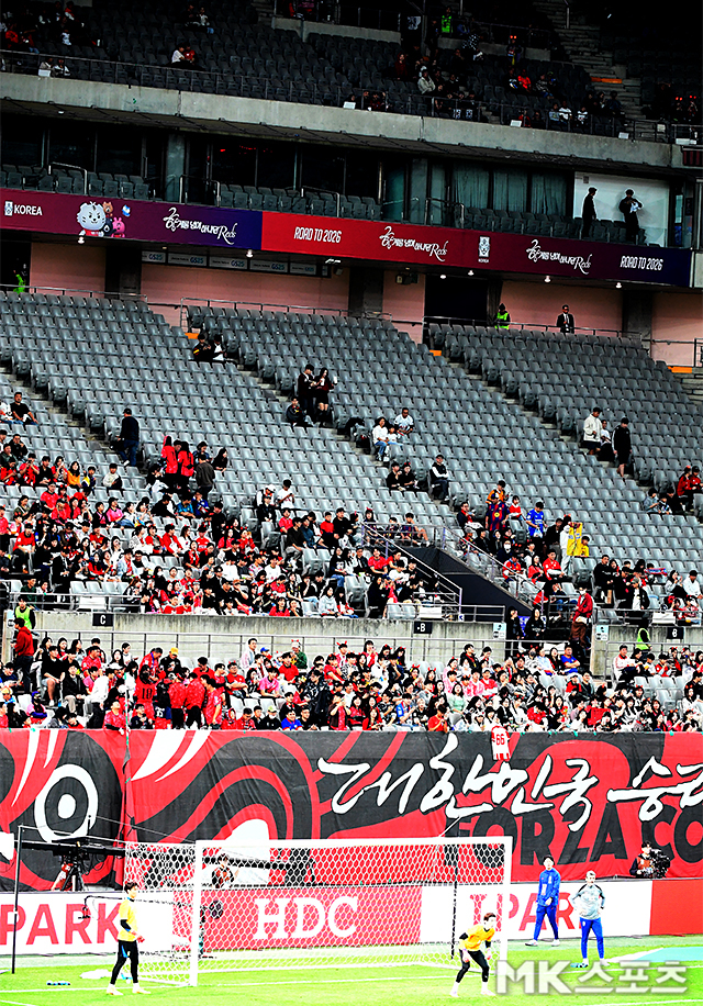 A대표팀의 마지막 매진 경기는 3월 25일 수원월드컵경기장에서 열린 요르단과 2026 북중미 월드컵 아시아 3차 예선 8차전이다. 이후 직전 브라질전까지 5경기 연속 홈 경기 매진에 실패하고 있다. 파라과이전까지 포함하면 6경기 연속이다.