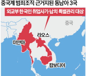 미얀마와 라오스는 캄보디아보다도 치안이 불안정한 곳으로 꼽힌다. 범죄조직이 현지 정치인이나 군 지도자들의 비호를 받는 등 공권력과 유착도 심각하다. 라오스 북부 ‘골든트라이앵글 경제특구’는 2007년 중국 카지노 그룹인 킹스 로먼스가 99년간 부지를 임차해 카지노와 호텔 등을 건설하면서 사실상 행정권까지 장악했다. 라오스 경찰조차 진입하기 어렵다는 설명이다. 미국 재무부는 2018년 이 기업을 소유한 자오웨이를 초국가적 범죄조직을 운영하는 ‘갱단 두목’으로 지목해 인신매매 등 혐의로 제재 대상에 올렸다. 미얀마 미야와디 등 국경 도시들 역시 무장 반군과 중국계 범죄조직의 결탁으로 사기, 납치, 인신매매가 복합적으로 이뤄지는 치외법권 지대다.