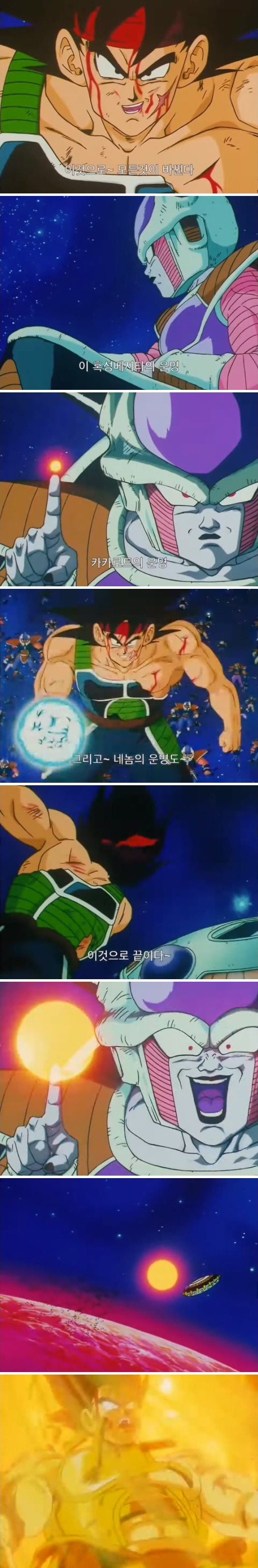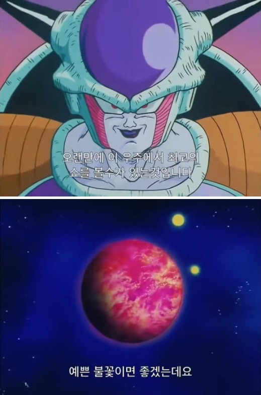 혹성베지터가 파괴되는 걸 보며 즐거워하는 프리저