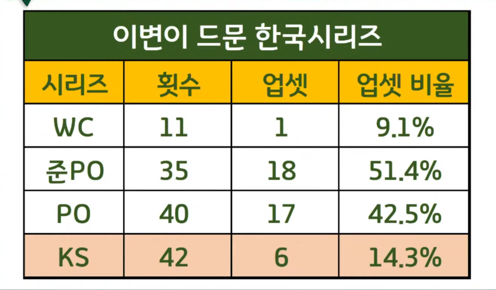 [KBO] 가을야구 시리즈별 업셋 비율