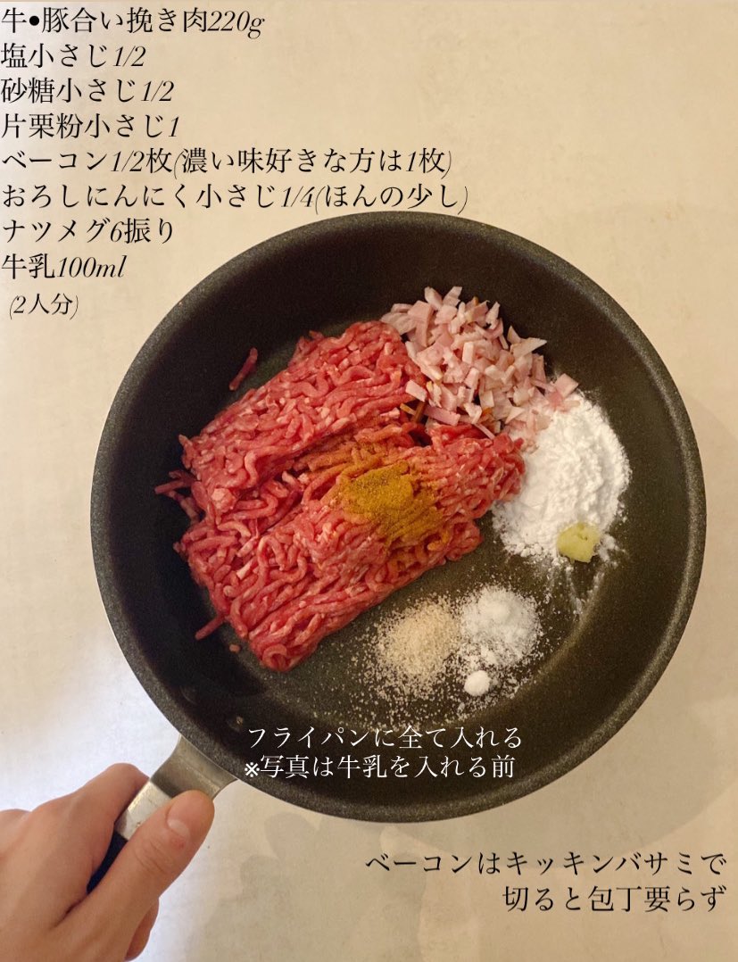 (베이컨을 가위로 잘라 넣으면 칼이 필요 없음)