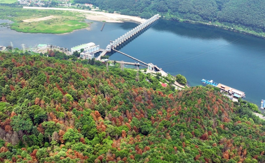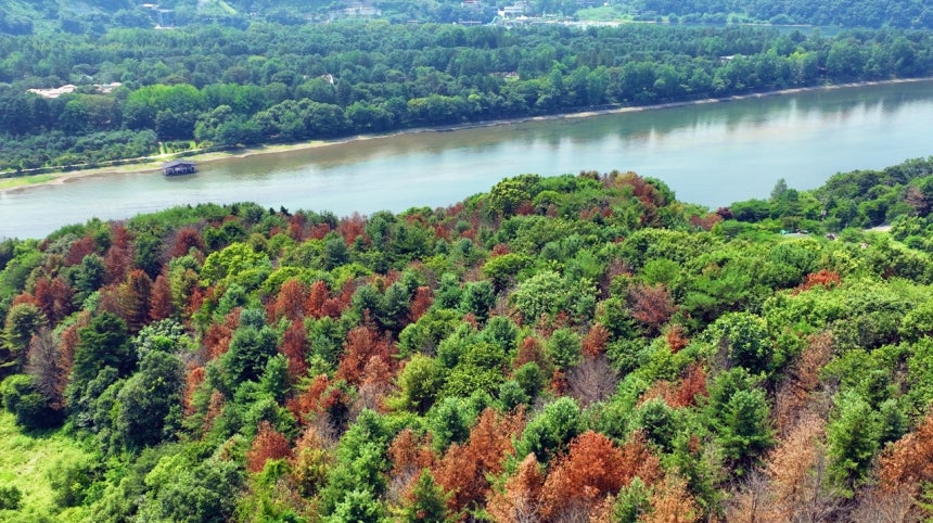 북한강의 청평댐 인근 숲 역시 소나무재선충병으로 심각한 고사가 진행 중이다.