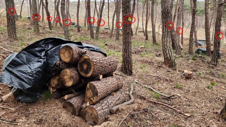 재선충병에 감염된 소나무들을 모두 잘라 훈증을 했다. 그러나 여전히 확산 중이다.