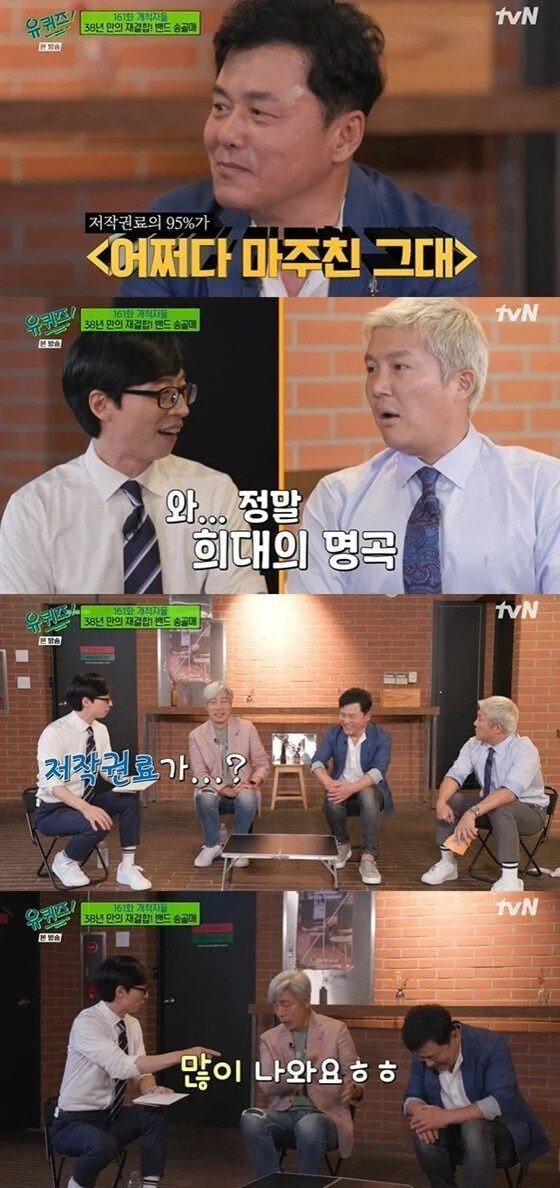 이날 배철수는 ‘어쩌다 마주친 그대’ 저작권료에 대해 “지금도 많이 나온다”고 했다. 이 곡을 작사, 작곡한 구창모는 “저에게 들어오는 저작권료 중 95%를 차지하는 곡이 ‘어쩌다 마주친 그대’”라고 덧붙여 궁금증을 모았다.