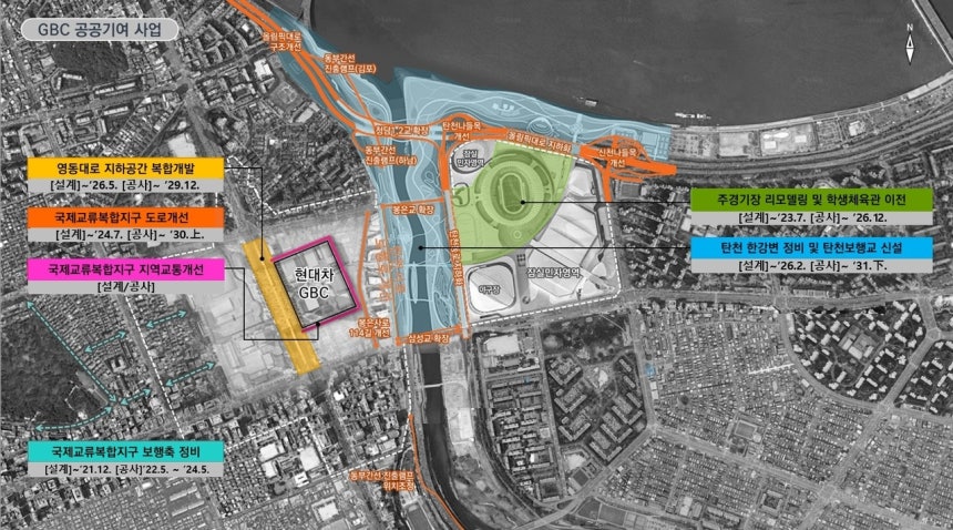 | 글로벌비즈니스센터(GBC) 공공기여 주요 사업 위치도. [서울시 제공] |