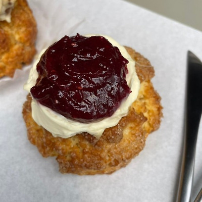 스콘에 잼 바르고 클로티드크림