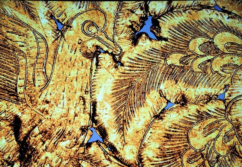 선각단화쌍조문금박