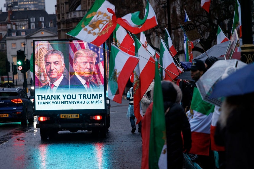 이란 정부 규탄 시위대는 이란 왕조의 마지막 왕세자였던 레자 팔레비의 사진과 왕정 국기를 들고 하메네이 지도부에 저항하고 있다고 함