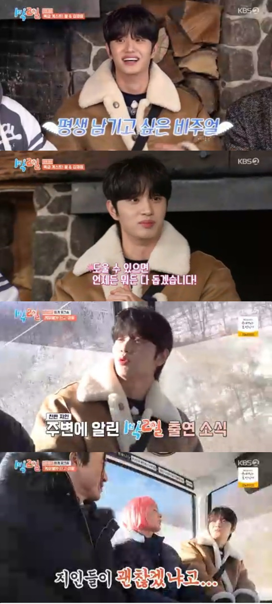 연기자 김재원이 '1박 2일' 메인PD가 사진 요청을 한 뒤 이틀 후 섭외연락을 해 왔다고 밝혔다.