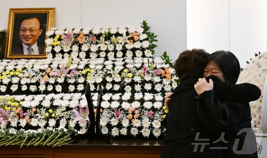 정치 유족과 포옹하는 권양숙 여사